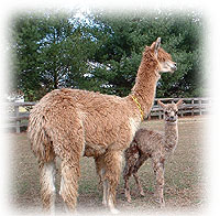 We bought our first alpacas in January of 2002 -- the pregnant Tasha and her daughter Tess.